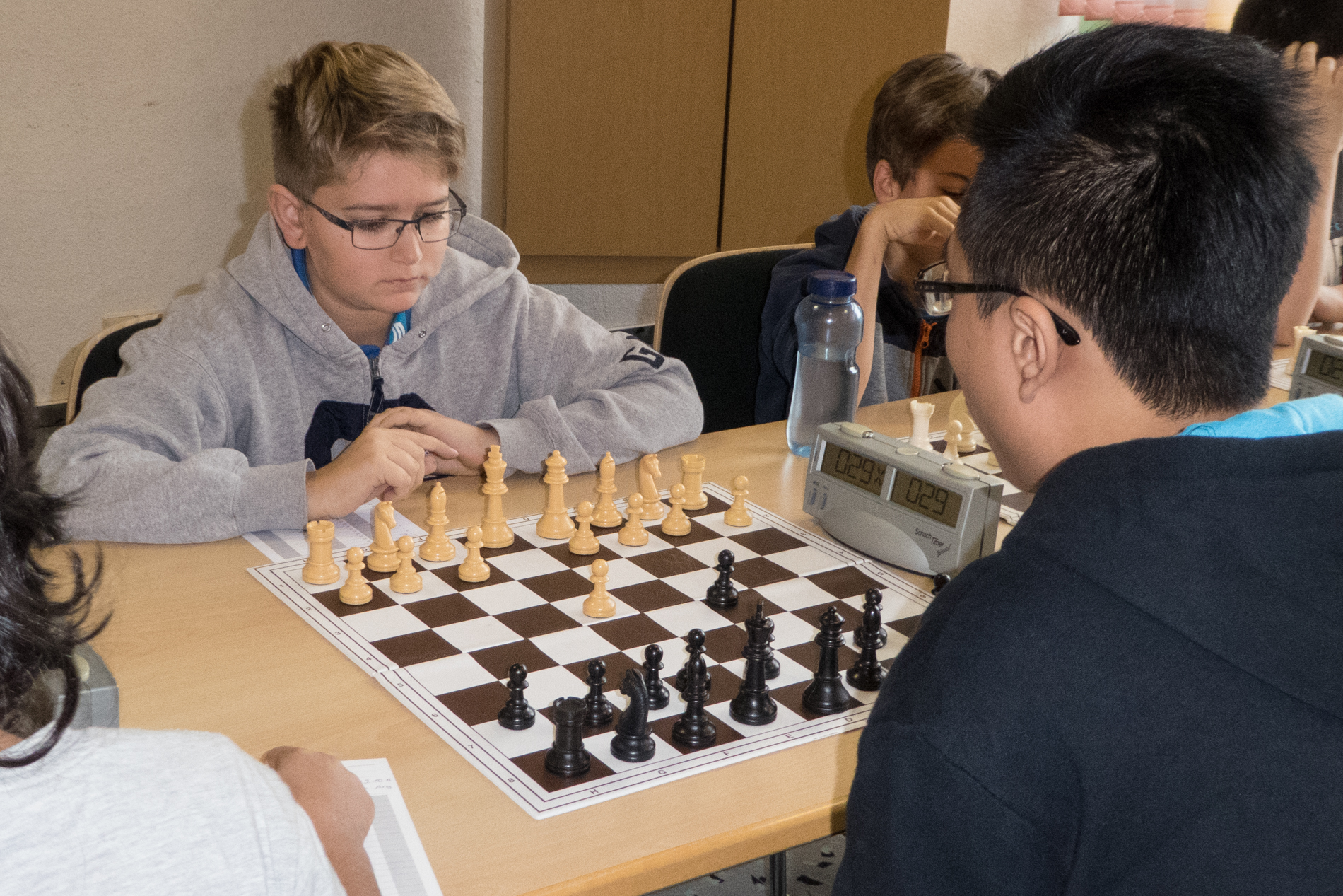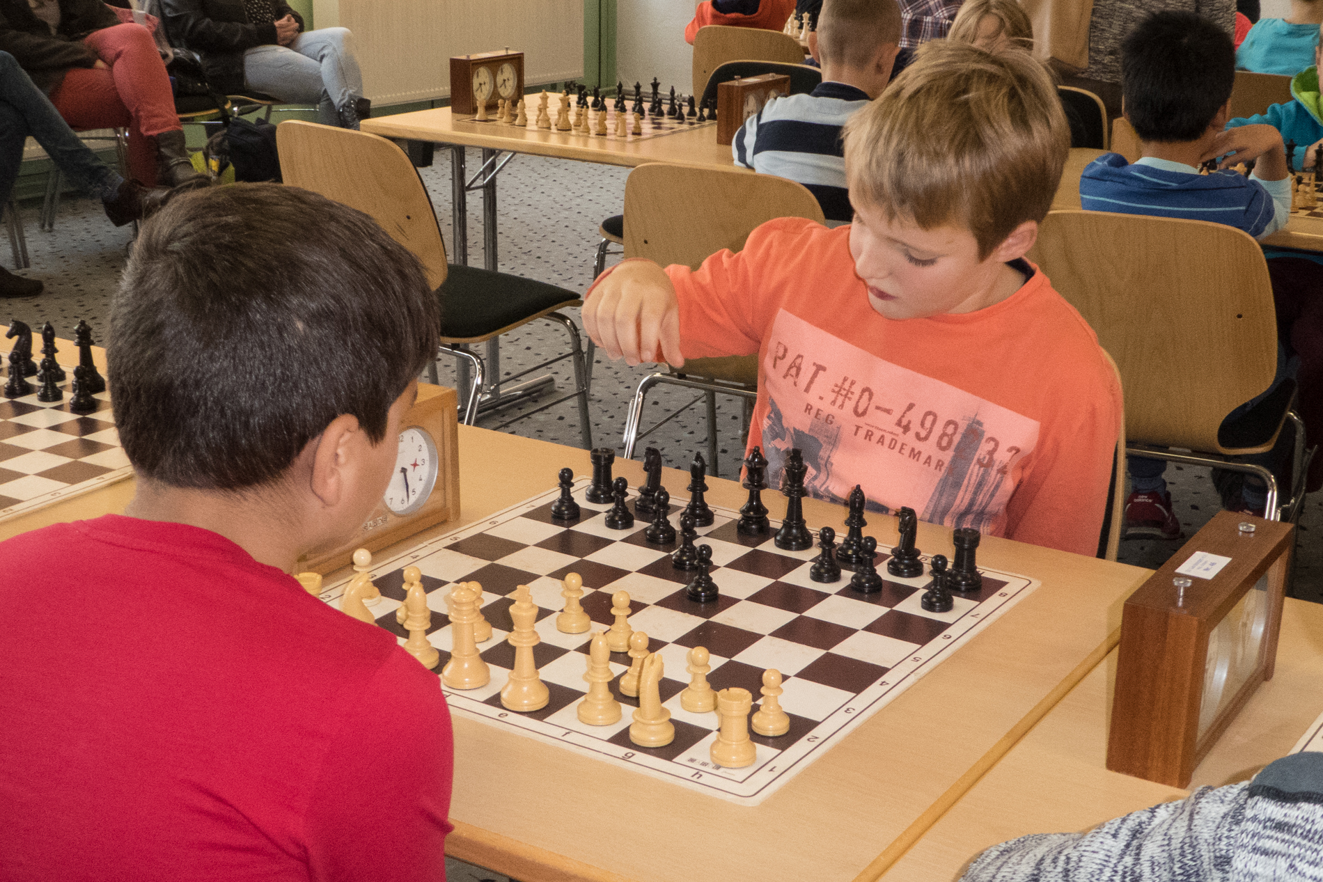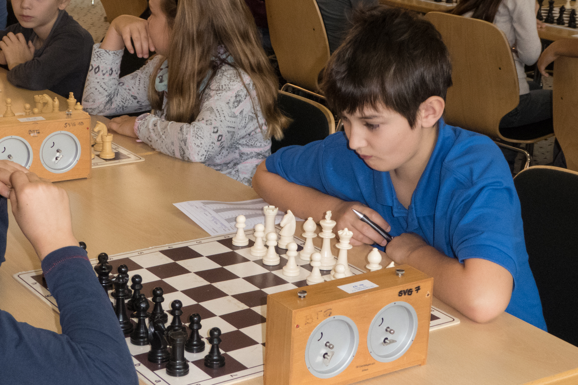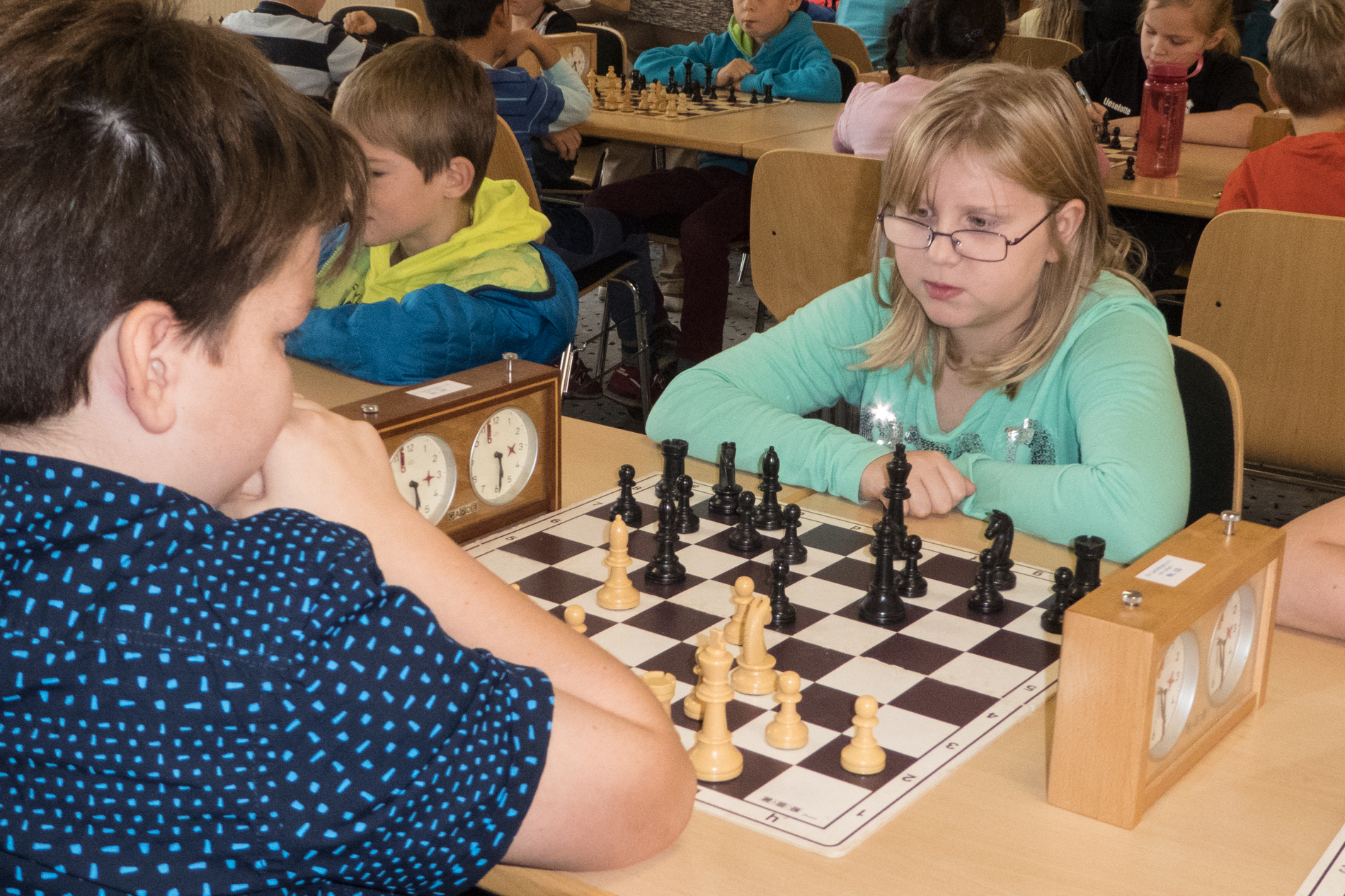 Am 29.Oktober 2016 fand das XXII.Jens-Posmyk-Gedenkturnier in der Aula der Gardelegener Grundschule statt. Aus unserem Verein und unser Schulschach AG waren 5 Schachtalente am Start. Im u11- Turnier spielten Julian Elstner, Hannes Nährlich und Josephine Bethge. Julian hatte gegen den spätern Turniersieger Robin Schiffner in der 3.Runde die Möglichkeit nach 8 Zügen matt zu setzen, fand den Gewinnzug allerdings nicht, so dass er mit 3,0 Punkten den 7.Platz belegte, mit 1,0 Punkt belegte Josephine den 17.Platz und Hannes verlor alle 5 Partien und wurde diesmal leider Letzter auf den 20.Platz. Im u13-Turnier spielten David Kappe und Malte Lehmann. David spielte in der letzten Runde gegen Siegfried Hoffmann um den Turniersieg. Leider konnte er sein gewonnenes Bauernendspiel nicht zum Sieg führen und verlor dann auch noch unglücklich, so dass es nur mit 3,0 Punkten zum 6.Platz reichte. Malte belegte mit 1,5 Punkten den 14.Platz, obwohl mit mehr Konzentration 2 Punkte mehr dringewesen wären. Zum Schluß möchte ich noch den Organisatoren und den vielen Helfern für das gut durchgeführte Turnier danken. | ||||||||||||||||||||||||||||||||||||||||||||||||||||||||||||||||||||||||||||||||||