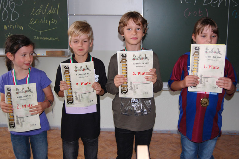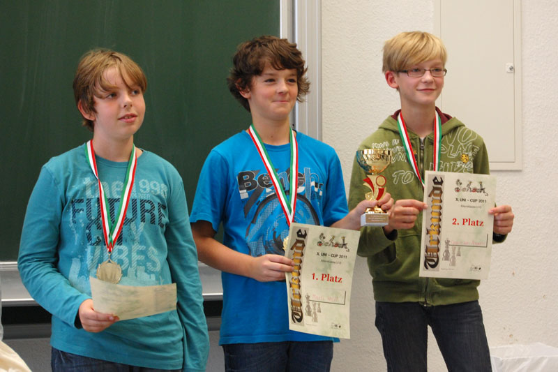 Hallo liebe Jugendleiter, wir können vom heute durchgeführten Altmark-Börde-Cup/Uni-Cup Erfolge für den Verein vermelden! Benjamin hat einen hervorragenden zweiten Platz in der U9 erreicht mit 5,5/7 Pkt. hinter dem Sieger S.Hoffmann (USC Magdeburg) mit 6,5/7 Pkt., gegen den er selbst Remis gespielt hat und damit eine Silber-Medaille mit nach Hause genommen. Die noch größere Überraschung war aber sicherlich der dritte Platz von Dominik in der U 13 mit 4/5 Pkt. Nach einer Auftaktniederlage gegen den späteren Sieger M.Wolff (Aufbau Elbe MD), der 4,5/5 Pkt erzielte, hat er seine restlichen vier Partien gewonnen und sich noch auf den Bronze-Platz vorgekämpft, zwischen die Phalanx der Aufbau Elbe-Spieler. Die beiden Turniere waren mit jeweils ca. 20 Teilnehmern recht gut besetzt. Daniel und Nicolas traten in einem zwar kleinen aber dafür sehr starken Feld U15/U20 an. Beide taten sich mit drei Niederlagen und einem Freilos schwer gegen jeweils auf dem Papier (DWZ Rangliste) deutlich stärkere Gegner. In der letzten Runde trafen dann beide aufeinander, wobei Daniel die Parie für sich entscheiden konnte. Viele Grüße Klaus | |||||||||||||||||||||||||||||||||||||||||||||||||||||||||||||||||||||||||||||||||