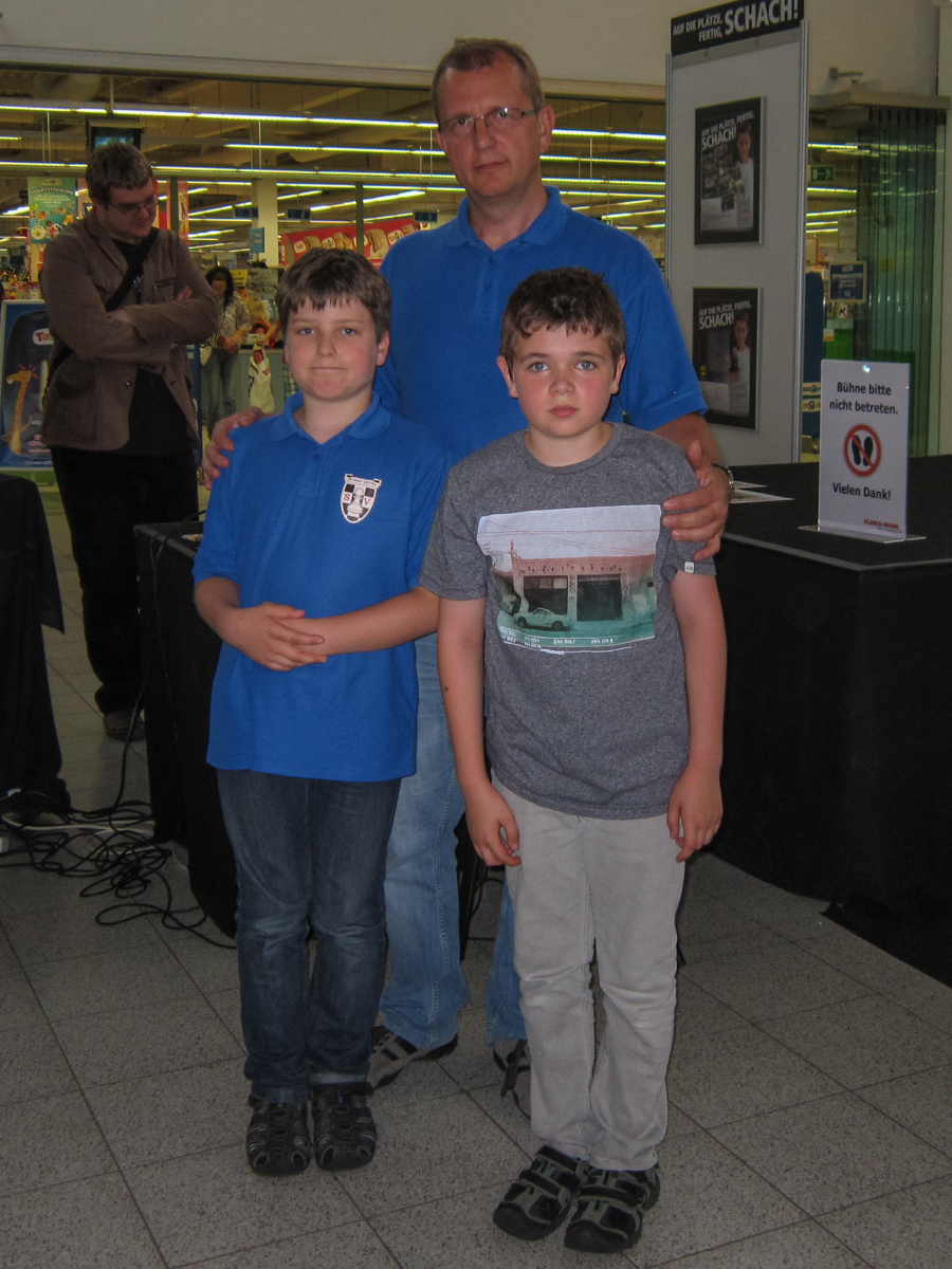Hallo Schachfreunde, am 13.Juni 2015 fand im Flora-Park der 1.Ottersleber Schachcup statt. Im Einsteigerturnier konnte Hannes Nährlich mit 4 aus 7 Punkten den 3.Platz erreichen. In der AK u9 ging mit Anthony Benke ein weiterer Spieler aus unserer Schul-AG am Start. Mit 4,5 Punkten aus 7 Partien errang er den 6.Platz von 24 Teilnehmern. In der AK u15 belegte Dominik Wagner mit 5 aus 6 Punkten den souveränen 1.Platz. | ||||||||||||||||||||||||||||||||||||||||||||||||||||||||||||||||||||||||||||||||||
