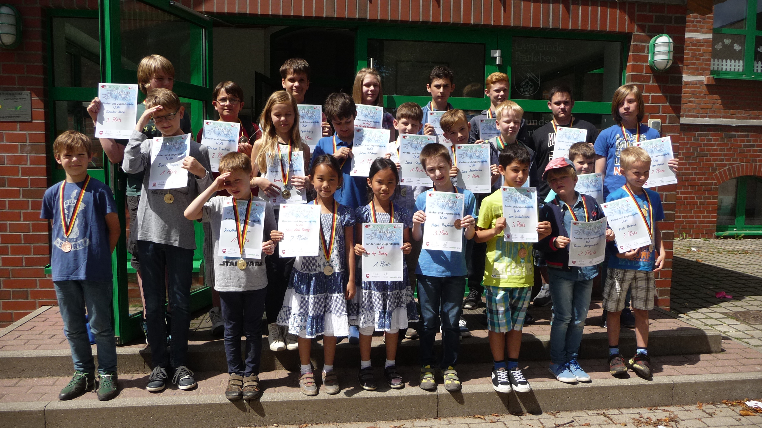 Am 18.Juni 2016 fand in der Grundschule Barleben die Kinder und Jugendspiele statt. Aus unseren Verein und der Schach AG waren 9 Nachwuchsspieler am Start. In der Altersklasse u14 war Barleben mit David Kappe, Malte Lehmann und Theo Nase vertreten. David belegte mit 4 Punkten den 1.Platz, Theo erreichte mit 3 Punkten den 3.Platz und Malte mit 2,5 Punkten den 5.Platz von 8 Teilnehmern. In der Altersklasse u12 spielte Julian Elsner und Anthony Benke. Julian errang mit 5 Punkten aus 5 Spielen 100% den 1.Platz, Anthony mit 2 Punkten den geteilten 7.Platz von 11 Teilnehmern. In der Altersklass u10 spielte Nick Krause, Malte Richter und Lucas Schmidt. Nick belegte den 2.Platz vor Malte auf Platz 3 und Lucas auf Platz 4. In der Altersklasse u8 spiete Gero Bergemann und Oskar Wöhlert. Gero belegte den 2.Platz vor Oskar auf Platz 3. Aus Barleber Sicht können wir sehr zufrieden auf zwei 1.Plätze, zwei 2.Plätze und vier 3.Plätze sein. | |||||||||||||||||||||||||||||||||||||||||||||||||||||||||||||||||||||||||||||||||