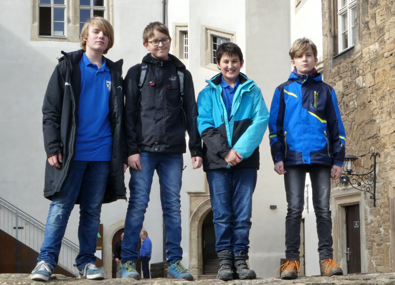 Für uns begann das Abenteuer der LJMM am Freitag um 14.00 Uhr mit der Abreise aus Barleben. Schon zwei Tage vorher musste Malte wegen einer Grippeerkrankung absagen. Gewarnt aus den Erfahrungen des letzten Jahres, wo David und Julian am Abreisetag erkrankten und ich die Meisterschaft absagen mußte, hatte ich vorsorglich Erik angemeldet, welcher dann auch für Malte an den Start ging. Am Donnerstag stand unsere Mannschaft mit David, Julian, Theo und Erik fest. Ja bis ich den Anruf von Julian bekam, das er am Freitag nicht mitfahren kann. Etwas enttäuscht kam ich dann zum Treffpunkt an der Mittellandhalle an. Dort warteten, neben David, Theo und Erik auch Julians Vater, der mir versicherte, so bald es Julian besser ginge, würde er ihn in Heldrungen vorbei bringen. Mit dieser Hoffnung fuhren wir dann zur Wasserburg Heldrungen. | |||||||||||||||||||||||||||||||||||||||||||||||||||||||||||||||||||||||||||||||||||||||||||||||||||||||||||||||