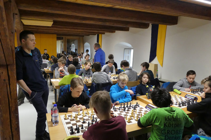 Dort angekommen bezogen wir unsere Zimmer und meldeten uns beim Turnierleiter an. Nach den beziehen der Betten ging es um 17.00 Uhr zum Abendessen in den verwinkelten Speisesälen der Burg im Erdgeschoß.. Frisch gestärkt bereiteten wir uns für die 1.Runde um 18.00 Uhr vor. Unser Spiellokal befand sich im Nebengebäude der Burg dem Zeughaus. | |||||||||||||||||||||||||||||||||||||||||||||||||||||||||||||||||||||||||||||||||||||||||||||||||||||||||||||||